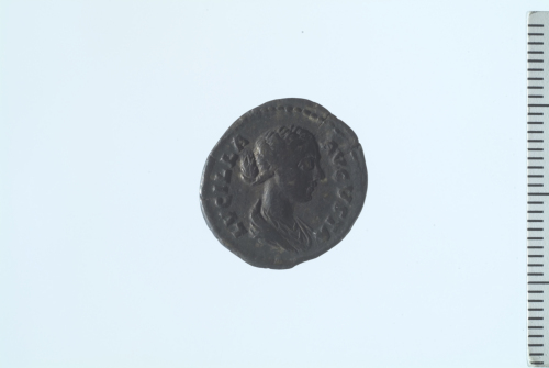 Dritto: Busto drappeggiato di Lucilla a d.; contorno perlinato.. Rovescio: Concordia seduta a s., recante patera e cornucopia; contorno perlinato.