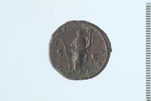 Dritto: Busto drappeggiato di Lucilla a d.; contorno perlinato.. Rovescio: Hilaritas stante a s., recante una cornucopia e una palma; contorno perlinato.