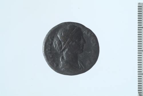 Dritto: Busto drappeggiato di Lucilla a d.. Rovescio: Giunone, velata, stante a s., recante patera e scettro; ai suoi piedi, pavone; contorno perlinato.