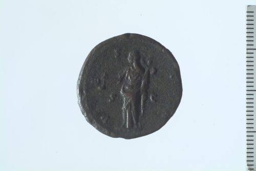 Dritto: Busto drappeggiato di Lucilla a d.; contorno perlinato.. Rovescio: Vesta, velata, stante a s., recante simpulum e Palladio; contorno perlinato.
