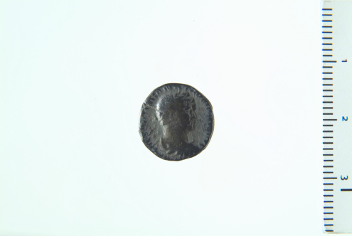 Dritto: Busto laureato di Adriano a d., con corazza e paludamentum, di tre quarti di spalle (?); contorno perlinato (?).. Rovescio: Vittoria seduta a s., reggente palma nella s. e corona nella d. sollevata; contorno perlinato.