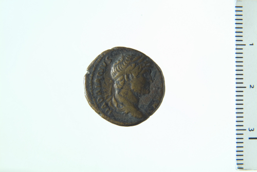 Dritto: Busto laureato e drappeggiato di Adriano a d.; contorno perlinato.. Rovescio: Lira; contorno perlinato.