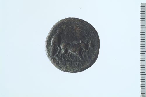 Dritto: Testa laureata di Commodo a d.. Rovescio: Commodo in atto di spingere l'aratro verso d.