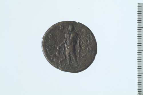 Dritto: Testa nuda di Clodio Albino a d.. Rovescio: Esculapio stante a s., recante caduceo.