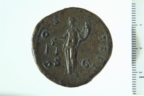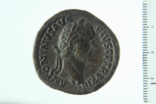 Dritto: Testa laureata di Antonino Pio a d.; contorno perlinato.. Rovescio: Aequitas stante a s., reggente cornucopia nella s. e bilancia nella d. protesa; contorno perlinato.
