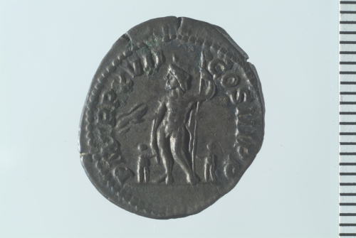 Dritto: Testa laureata di Settimio Severo a d.; contorno perlinato.. Rovescio: Giove stante a s.,con due bambini ai suoi piedi, recante fulmine e scettro; contorno perlinato.