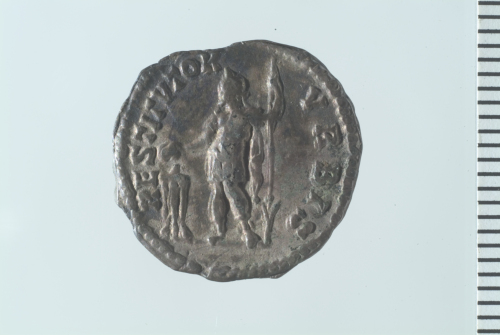Dritto: Testa laureata di Settimio Severo a d.; contorno perlinato.. Rovescio: Settimio Severo stante a s., recante lancia e in atto di compiere un'offerta su tripode; contorno perlinato.