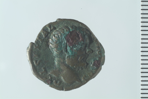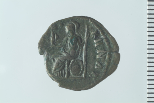 Dritto: Testa nuda di Clodio Albino a d.; contorno perlinato.. Rovescio: Roma, elmata, seduta a s. su scudo, recante Palladio e scettro; contorno perlinato.