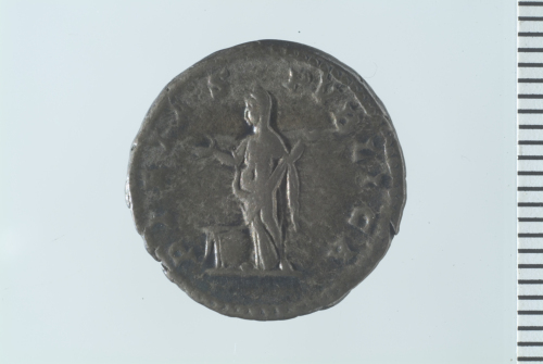 Dritto: Busto drappeggiato di Giulia Domna a d.; contorno perlinato.. Rovescio: Pietas stante presso altare, in atto di alzare al cielo entrambe le mani; contorno perlinato.
