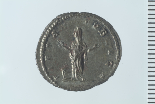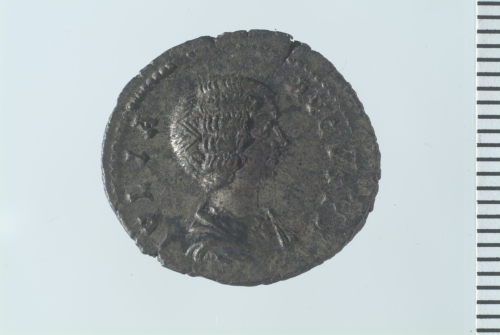 Dritto: Busto drappeggiato di Giulia Domna a d.; contorno perlinato.. Rovescio: Pietas stante presso altare, in atto di alzare al cielo entrambe le mani; contorno perlinato.