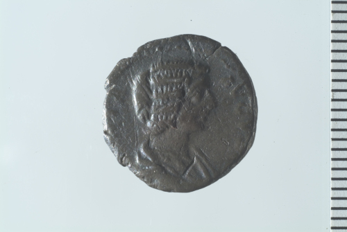 Dritto: Busto drappeggiato di Giulia Domna a d.; contorno perlinato.. Rovescio: Vesta stante a s., recante patera e scettro; contorno perlinato.