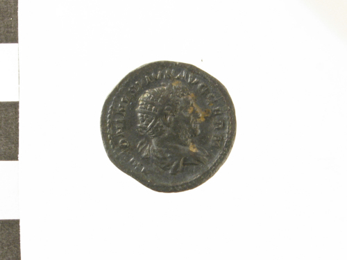 Dritto: Testa radiata e drappeggiata di Antonino III a d.; contorno perlinato.. Rovescio: Serapide stante a s., recante scettro e con mano s. alzata; contorno perlinato.