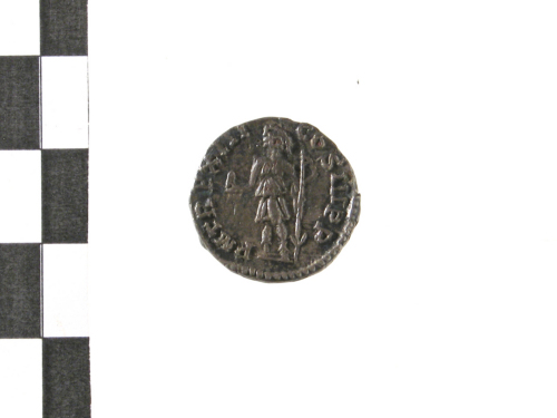 Dritto: Testa laureata di Antonino III a d.; contorno perlinato.. Rovescio: Caracalla stante a s., recante lancia e rotolo; contorno perlinato.