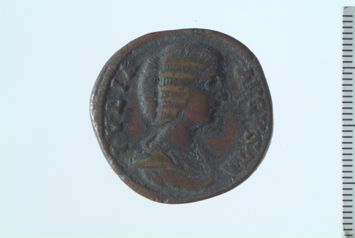Dritto: Busto drappeggiato di Giulia Domna a d.; contorno perlinato.. Rovescio: Venere stante di fronte, con testa a s., recante mela e in atto di scostare la veste; contorno perlinato.