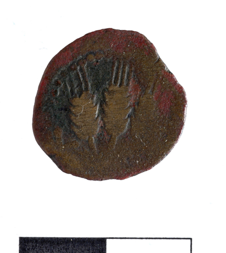 Dritto: Ombrello con frangia;intorno[BASILE ]OS[AGRIPA ]. Rovescio: Tre sighe d'orso;in campo L e [E']