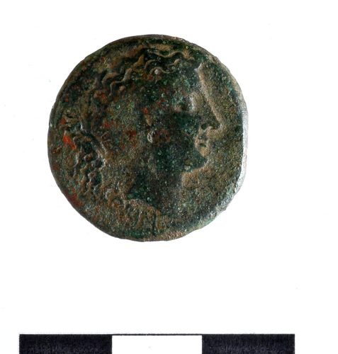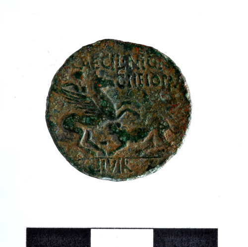 Dritto: Afrodite, dietro CORINT. Rovescio: Bellerofonte su Pegaso colpisce una chimera; sopra [Q] CAECIL.NIGR CHEIO PM;in esergo IIVIR