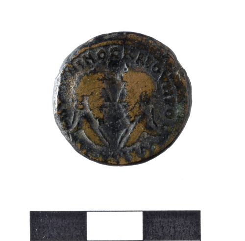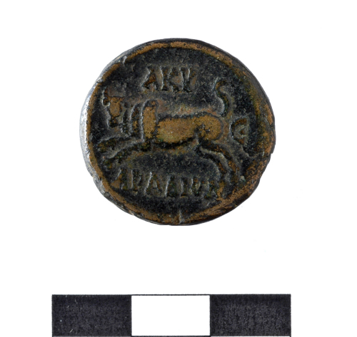 Dritto: T.laureate di M.Aurelio ed L.Vero a sin.che si guardano;[ ANTO]NINOSKAIOVNROS. Rovescio: Toro al galosso salta a sin.;sopra AKY; a d.TH ?;sotto ARADIUM