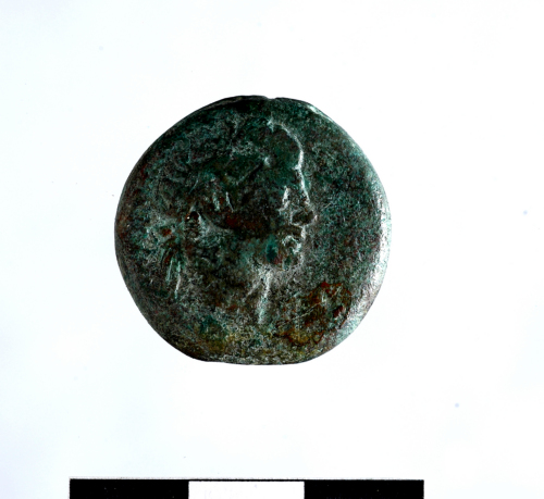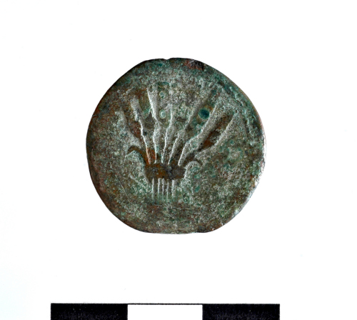Dritto: T.laureata a d.,[ PATE' PATRIDOS]. Rovescio: sei spighe di GRANO; [SE'BASTOS]