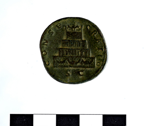 Dritto: DIVO GETA SEP [---] busto di Geta a d.. Rovescio: CONSECRATIO pira,al lati,S.C.