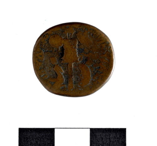 Dritto: T.di Tito laureato a d.intorno [ AUTOKRTIT O KA]ISAR. Rovescio: Trofeo,a sin.prigioniero;a d.scudo;intorno IOVA IAIA [ EALOK]YIAS