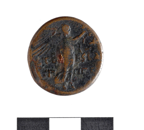 Dritto: Busto di Tito scoperto e laureato a d.;intorno [ AVTOKR TITO S] KAISARSEBAS. Rovescio: Nike andante a d.;regge corona con la d.e ha sulla spalla sin.un ramo di palma;sopra una stella a sei punte;in campo [E]TO KEBA [A]GRI PP[A]
