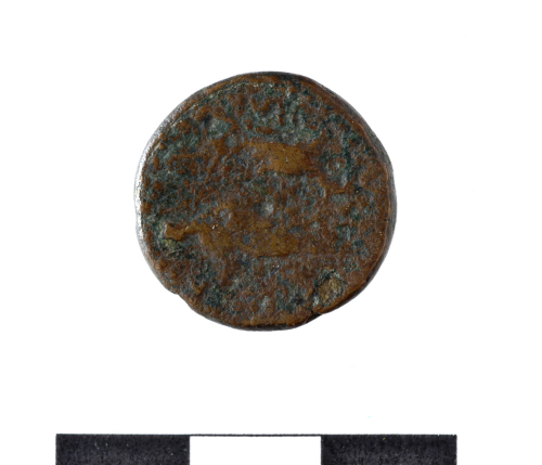 Dritto: NERO C.[CAESAR ]busto laureato dell' imperatore a d.. Rovescio: CLAV.[ANAXILAO]IIVIR Nerone stante a s.incoronato dalla Tyche turrita stante a s.