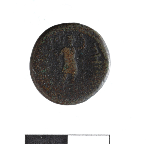 Dritto: [IMP.DOMITIAN---]testa laureata di Domiziano a d.. Rovescio: [SEBAS]TE'N[ON]figura maschile stante di prospetto,con asta e parazonium