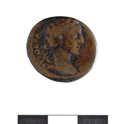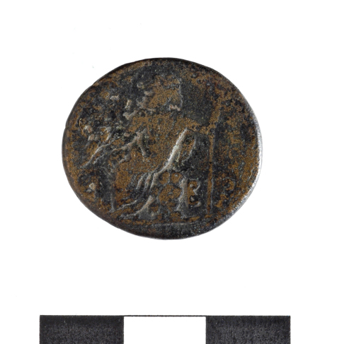 Dritto: T.laureata di Antonino Pio;AYTOKRA [TORKESARTITE L] ANTO NIN.... Rovescio: Zeus Kataibates,indossa l'himation,è seduto su una roccia,regge con la d.,il fulmine e con la sin.lo scettro,davanti a lui è l'aquila;in campo a d.: B [DIOSKATAIBATOY KYR] RE'STON