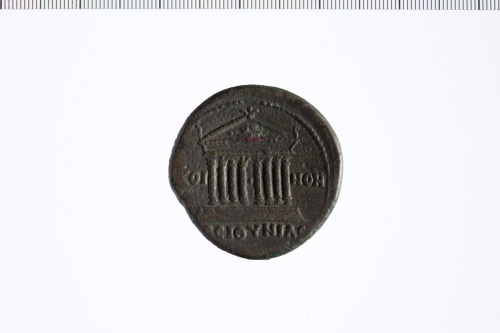 Dritto: Testa laureata di Adriano a d.. Rovescio: Tempio ottastilo.