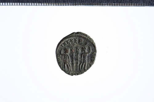 Dritto: Busto laur. e corazz. a d.. Rovescio: Coppia di trofei militari tra due legionari; es. S[M.]