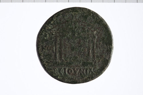 Dritto: Busto di Sabina a d., drappeggiato, capelli raccolti in cima alla testa.. Rovescio: Tempio ottastilo con figura maschile che trattiene scettro e sacrifica all'altare.