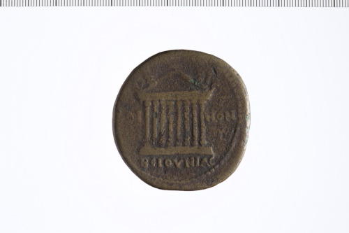 Dritto: Busto di Sabina a d., drappeggiato, capelli raccolti in cima alla testa.. Rovescio: Tempio ottastilo con figura maschile che trattiene scettro e sacrifica all'altare.