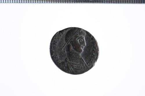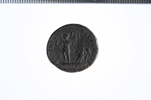 Dritto: Busto drapp. e corazz. a d.. Rovescio: Imperatore in abito militare su galea, regge con la d. fenice su globo e con la s. vessillo con cristogramma; dietro la Vittoria seduta, es. [....]