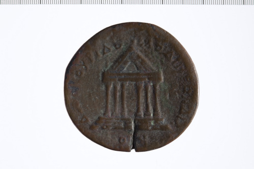 Dritto: Busto di Domizia a d., drappeggiato, capelli raccolti sulla nuca.. Rovescio: Tempio esastilo.