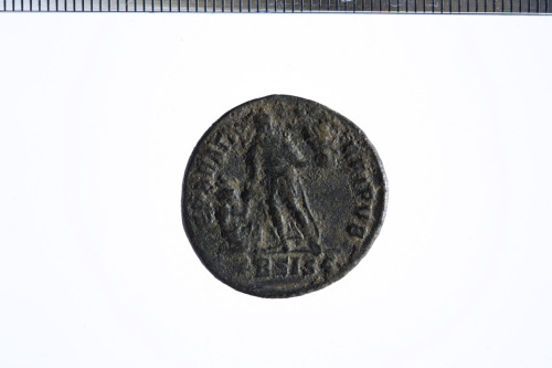 Dritto: Busto diadem., drapp. e corazz. a d.. Rovescio: Imperatore stante a s., regge Vittoria su globo nella s. e porge la d. a donna con copricapo turrito inginocchiata, es. (asterisco)BSISC