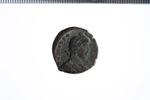 Dritto: Busto diad., corazz. e drapp. a d.. Rovescio: Imperatore stante cpn globo nella s. e labaro nella d., es. S[---]