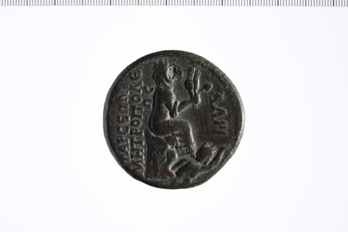 Dritto: L'imperatore come Zeus, seduto a s. sul trono, indossa himation; con la mano d. tiene una Nike con corona e nella s. tiene lo scettro.. Rovescio: Tyche, turrita e velata, seduta a d. su sedile decorato con zampe di animali; nella mano d. tiene spighe di grano e papavero; ai suoi piedi una divinità fluviale Kydnos, nuota verso d.