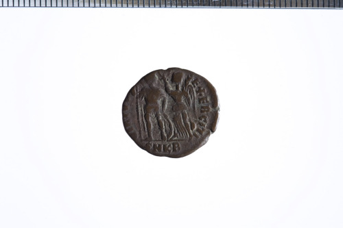 Dritto: Busto diadem., corazz. e drapp. a d.. Rovescio: Imperatore stante tiene lancia con la d. e scudo dietro le gambe; la Vittoria lo incorona a d., es. SMKB