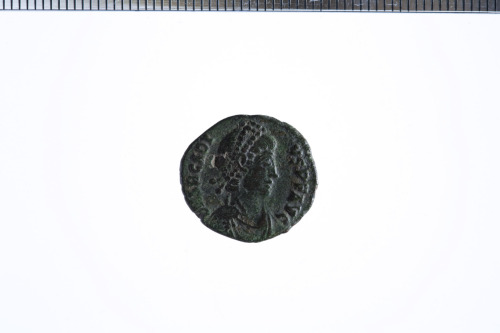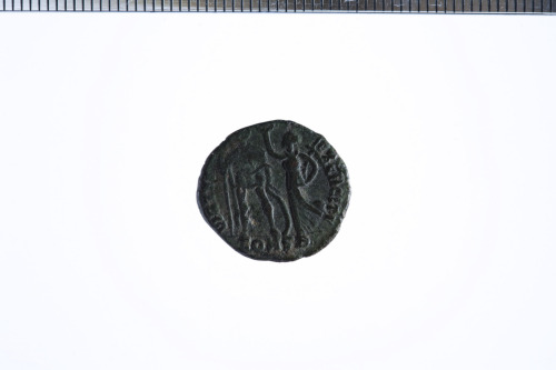 Dritto: Busto diadem., corazz. e drapp. a d.. Rovescio: Imperatore stante tiene lancia con la d. e scudo dietro le gambe; la Vittoria lo incorona a d., es. CONS(epsilon retrograda)