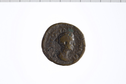 Dritto: Busto di Faustina II a d.. Rovescio: Tyche stante a s. trattiene timone e cornucopia.