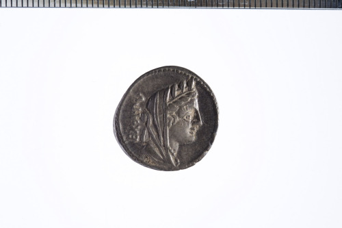 Dritto: Testa velata e con corona turrita di Cibele a d.; c.p.. Rovescio: Vittoria in biga a d. che regge le redini con la s. e un frustino con la d.; davanti, un uccello; c.p.