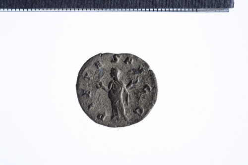 Dritto: Busto radiato e drappeggiato di Treboniano Gallo a d.; contorno perlinato.. Rovescio: Pietas velata stante frontalmente rivolta a s. con le mani levate; contorno perlinato.