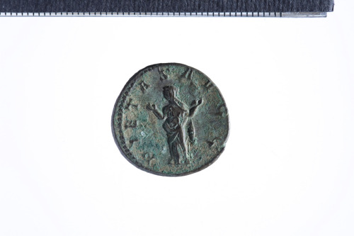 Dritto: Busto radiato e drappeggiato di Treboniano Gallo a d.; contorno perlinato.. Rovescio: Pietas velata stante frontalmente rivolta a s. con le mani levate; contorno perlinato.