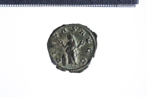 Dritto: Busto radiato e drappeggiato di Treboniano Gallo a d.; contorno perlinato.. Rovescio: Pietas velata stante frontalmente rivolta a s. con le mani levate; a s., altare; contorno perlinato.