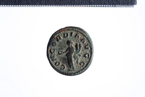 Dritto: Busto radiato e drappeggiato di Volusiano a d.; contorno perlinato.. Rovescio: Concordia stante a s. con patera e doppia cornucopia; contorno perlinato.