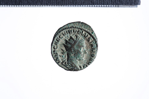 Dritto: Busto radiato e drappeggiato di Volusiano a d.; contorno perlinato.. Rovescio: Pax stante a s. con ramo e scettro trasversale; contorno perlinato.