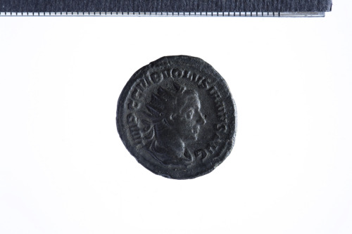 Dritto: Busto radiato e drappeggiato di Volusiano a d.; contorno perlinato.. Rovescio: Virtus elmata stante a d. con lancia e appoggiata a uno scudo; contorno perlinato.