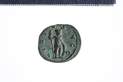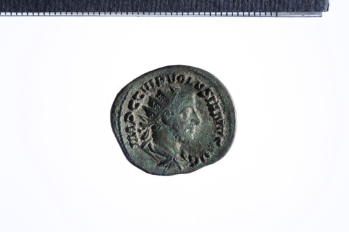 Dritto: Busto radiato e drappeggiato di Volusiano a d.; contorno perlinato.. Rovescio: Virtus elmata stante a d. con lancia e appoggiata a uno scudo; contorno perlinato.