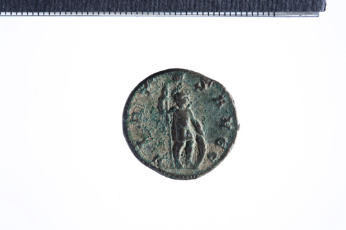 Dritto: Busto radiato e drappeggiato di Volusiano a d.; contorno perlinato.. Rovescio: Virtus elmata stante a d. con lancia e appoggiata a uno scudo; contorno perlinato.