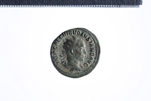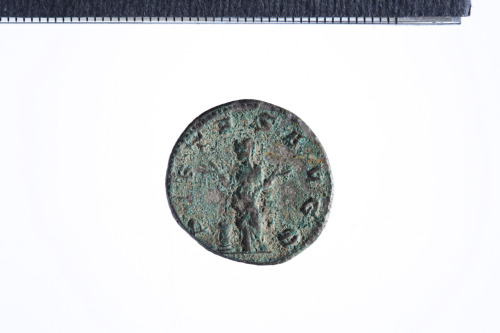Dritto: Busto radiato e drappeggiato di Volusiano a d.; contorno perlinato.. Rovescio: Pietas velata stante a s. con le braccia levate al cielo; a s., altare acceso; contorno perlinato.